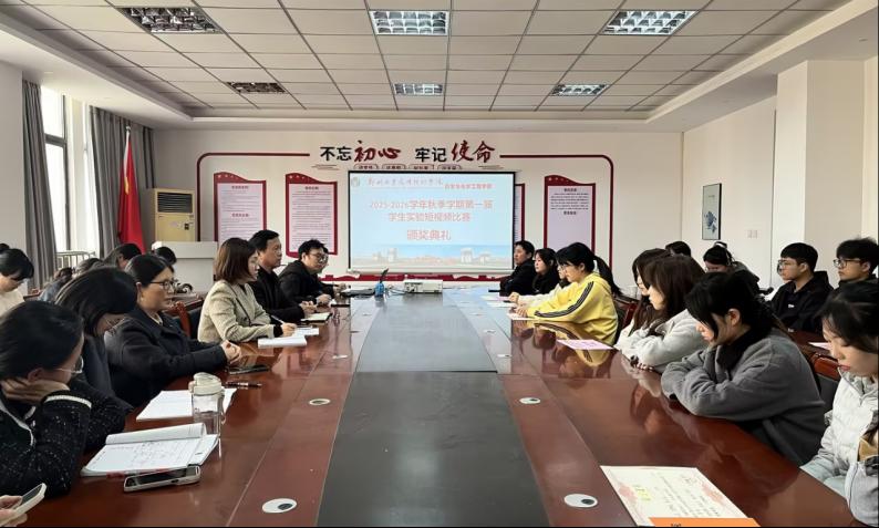 (文:牛兰岚 图:牛兰岚 审核:邵香敏、姜亚玲)为深化实验教学改革,强化学生实践操作与创新能力,营造崇尚科学、勇于探索的校园学术氛围,2026年3月24日,药学与化学工程学院在医学南楼416举行2025-2026学年秋季学期第一届学生实验短视频比赛颁奖仪式。学院院长岑世宏教授、副院长姜亚玲副教授、副院长李冬伊老师、张会丽教授、各教研室主任、实验中心主任及获奖师生出席活动,仪式由姜亚玲主持。