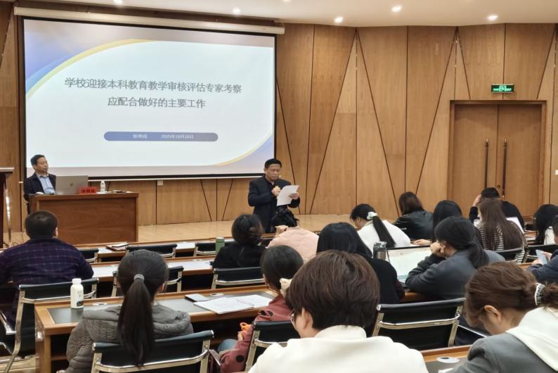 (文:马杰祎;图:李佳语;审核:姜亚玲)为扎实推进本科教育教学审核评估冲刺阶段各项工作,明确核心任务与攻坚方向,2025年10月16日(星期四)下午14:30,郑州工业应用技术学院医学部特邀教育部教育教学评估专家、郑州师范学院教务处处长徐明成教授作专题讲座。讲座由药学与化学工程学院院长岑世宏教授主持,医学部领导班子、各教学单位负责人、专业带头人、骨干教师及教学管理人员等齐聚现场,共同聚焦评估冲刺关键节点的重点工作。
