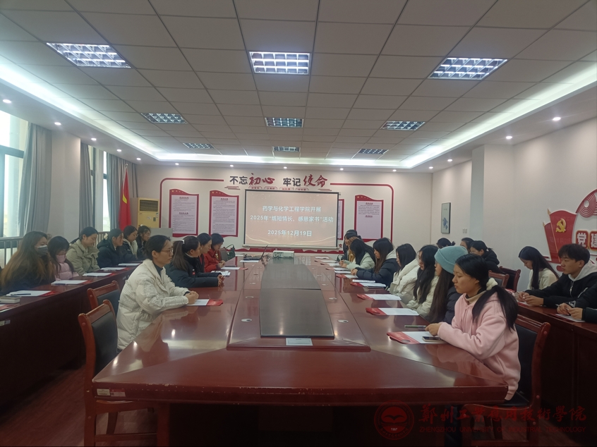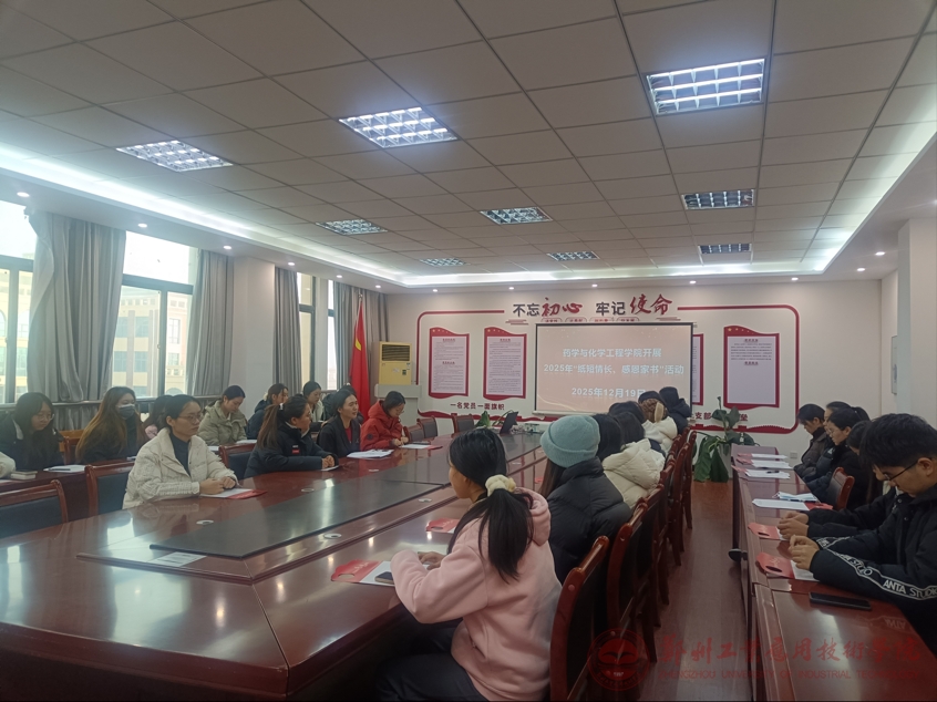 为学生搭建与家人沟通的情感桥梁,缓解学业生活压力,丰富校园文化生活,2025年12月19日,药学与化学工程学院于医学南楼416会议室开展“纸短情长,感恩家书”邮寄活动,药学与化学工程学院分团委书记倪言言老师,分团委副书记马旭老师,各级辅导员老师及部分学生共同参与。