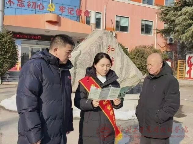 药学与化学工程学院2024级药物制剂(BK)2班学生支静怡,2026年1月25日,在河南省郑州市二七区侯寨乡西胡垌社区开展基层宣讲活动。实践期间,支静怡同学化身资助政策宣传员与解说员,面向基层群众,重点对准大学生及在读学生家庭开展精准宣讲。