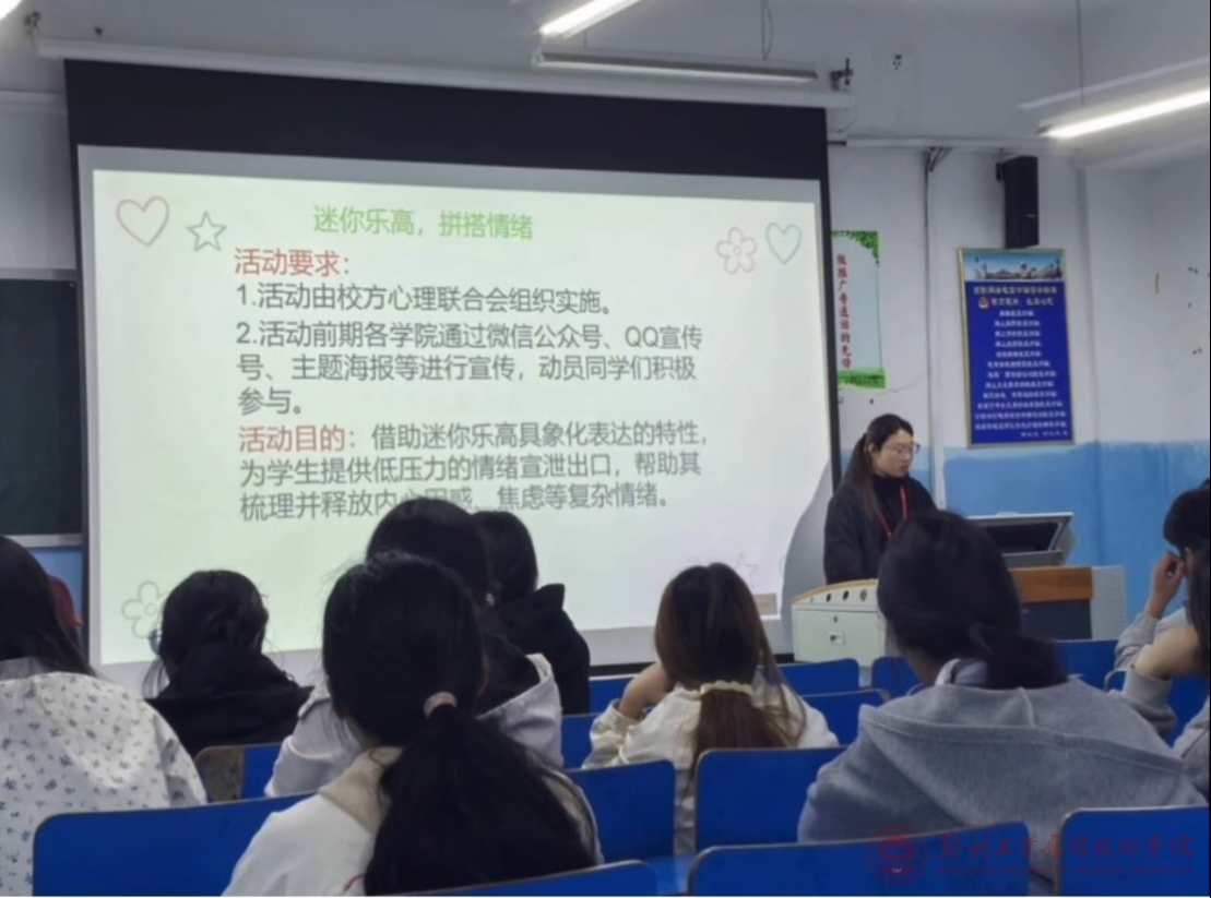 接着,会议介绍本月“迷你乐高·拼搭情绪”特色活动,让同学们有低压力的情绪宣泄出口。活动前期,需大家通过微信公众号、主题海报等多渠道广泛宣传,动员更多同学们积极参与。希望同学们可以借着小小的乐高积木,把心里藏着的困惑、焦虑这些复杂情绪,一点点拼出来;在专心致志拼搭乐高的过程里,同学们可以慢慢梳理乱糟糟的心绪,轻松释放积攒的压力。