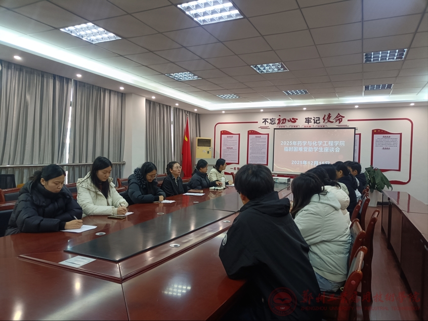 为切实帮助学院内遇到临时经济困难的学生,传递学院关怀,助力学生健康成长与学业发展,药学与化学工程学院于2025年12月15日在医学南楼416召开了2025年临时困难受助学生座谈会,学院分团委书记倪言言、各级辅导员与临时困难受助学生共同参加了本次会议。