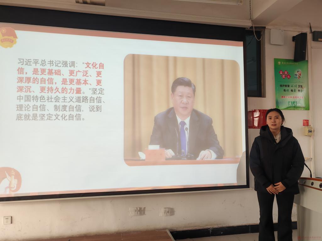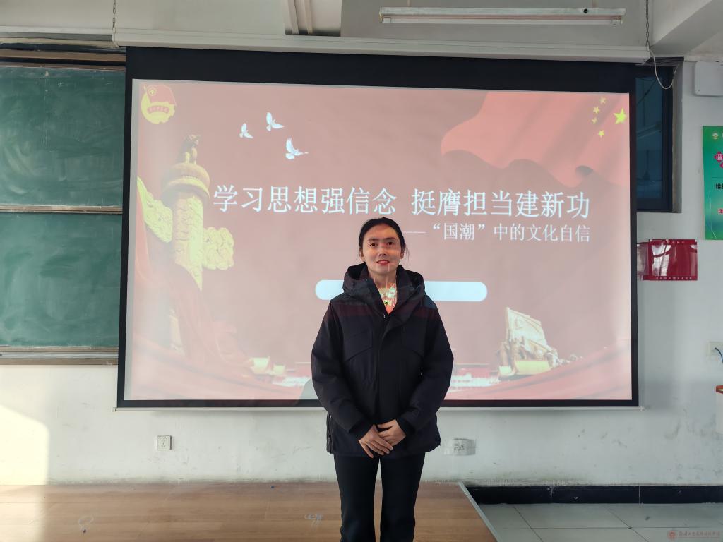 为深入学习贯彻习近平新时代中国特色社会主义思想,引导“青马工程”学员坚定理想信念、厚植文化自信,切实增强新时代青年的使命担当,1月8日,药学与化学工程学院分团委书记倪言言老师以“学习思想强信念 挺膺担当建新功——国潮中的文化自信”为题,为学院全体“青马工程”学员开展专题授课。